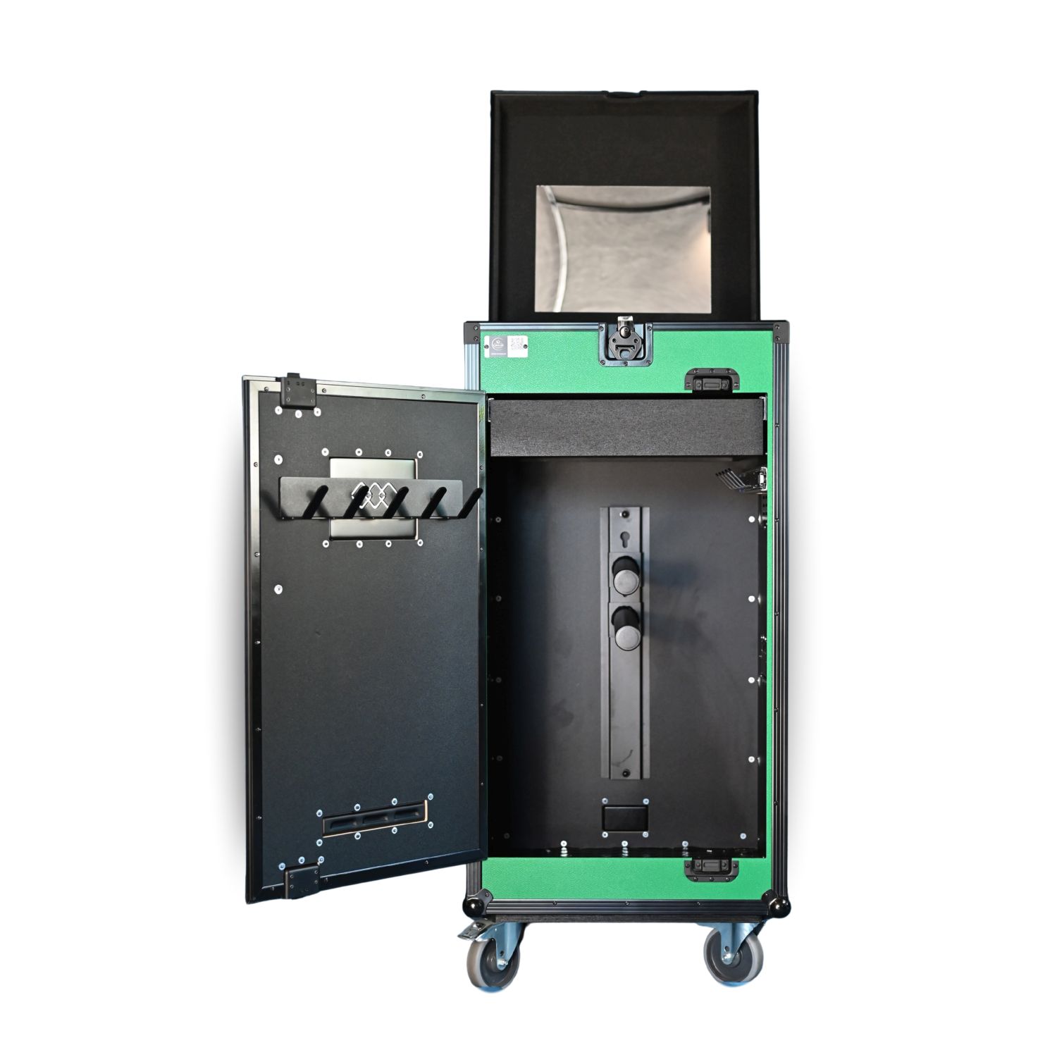 • Górna komora zamykana na klucz (zamek motylkowy), wykończona miękką pianką i z lustrem