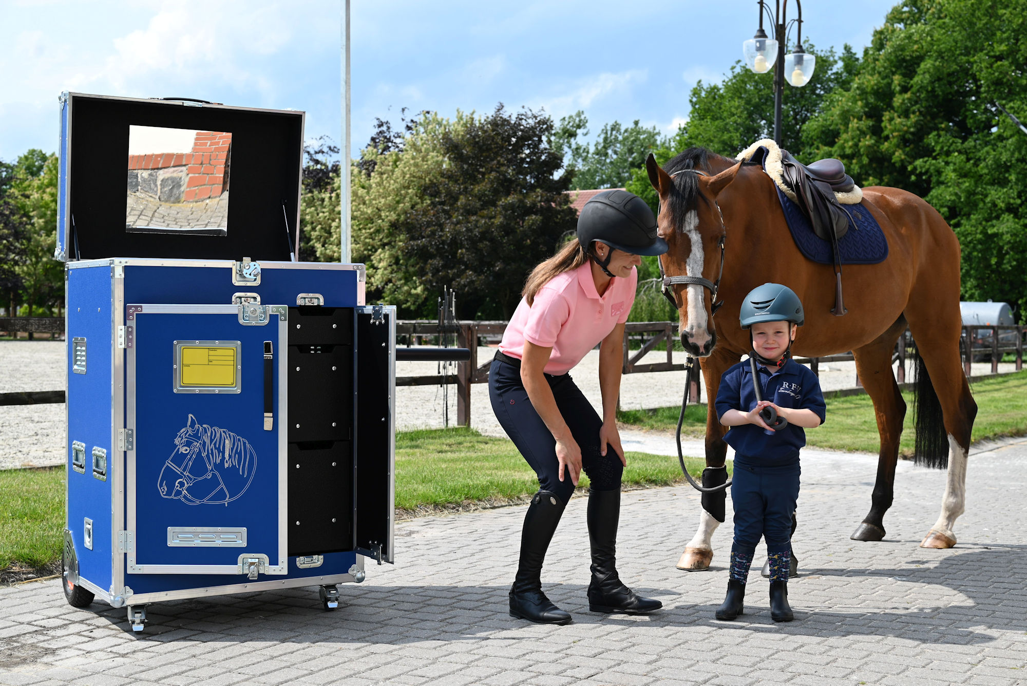 Każdy model rozwijaliśmy w dialogu z czynnymi jeźdźcami — zarówno zawodnikami, jak i pasjonatami. Ich wskazówki pomogły dopracować wnętrza, uchwyty, zamki, proporcje i system przechowywania tak, aby w praktyce działały bez zarzutu.